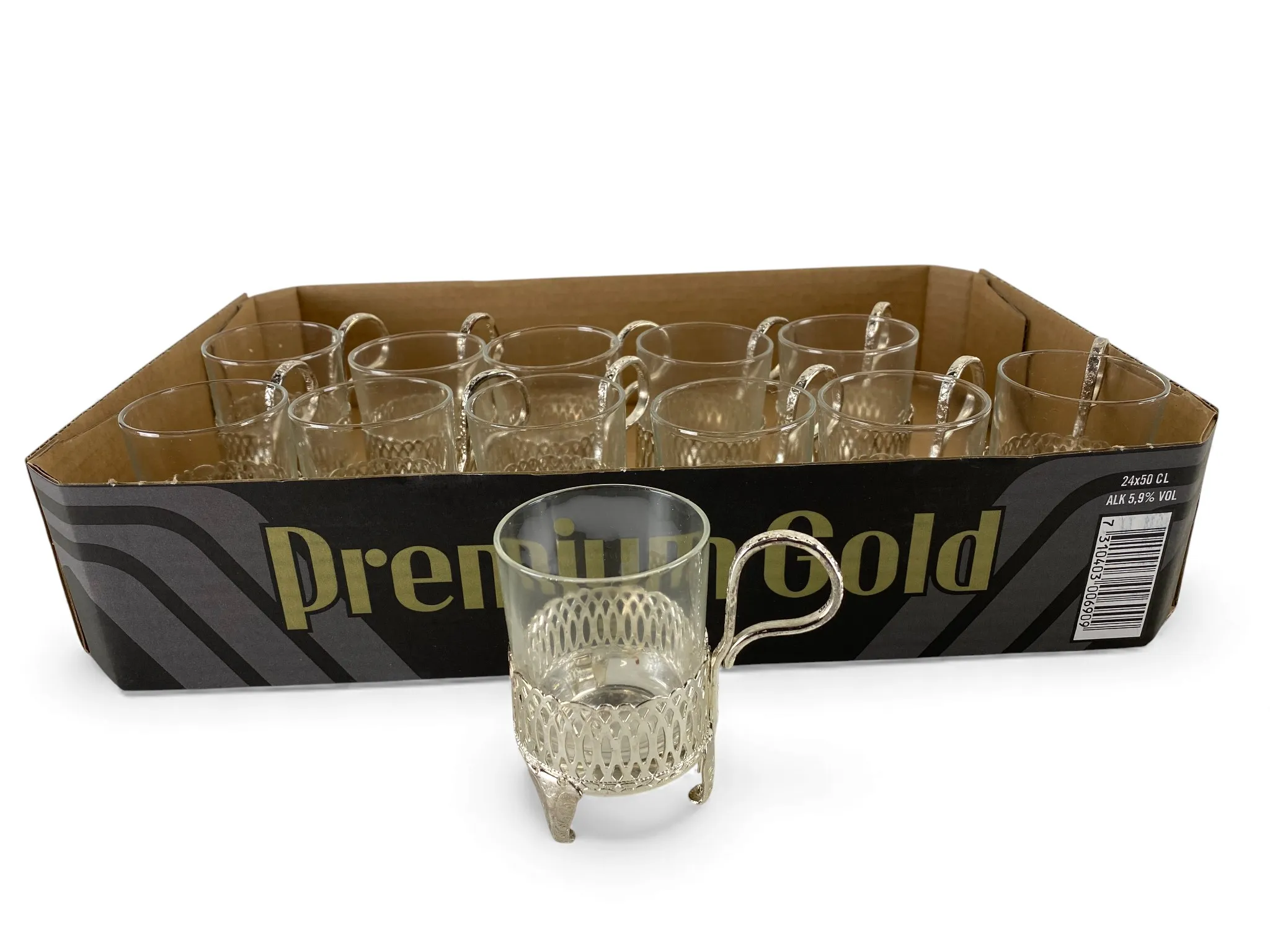 144. 12 Kaffe-/te-/glögglas med hållare