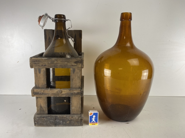 42. 2 Flaskor varav en i träställning