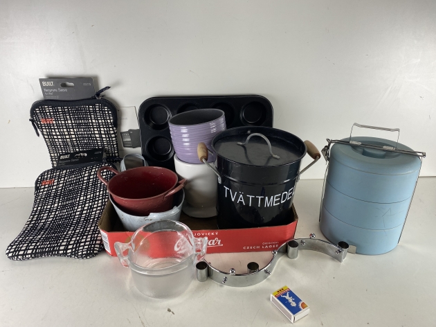 23. 2 Ipadfodral, nya, muffinsplåt, våningskakburk, melamin/bambu? mm