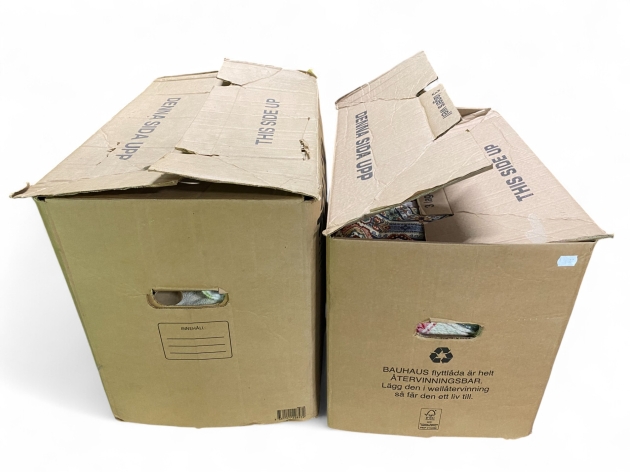 100. 2 Lådor med textilier