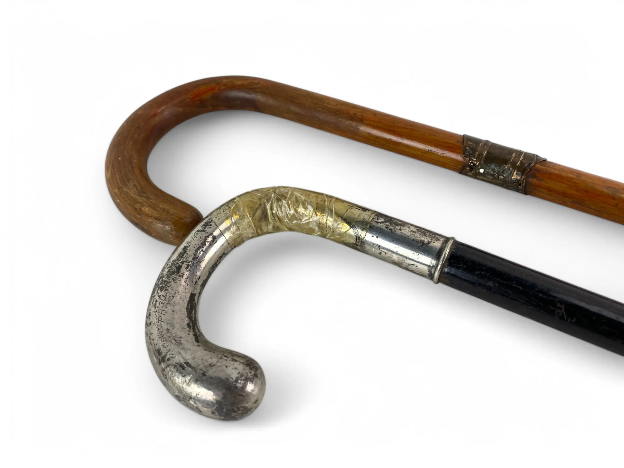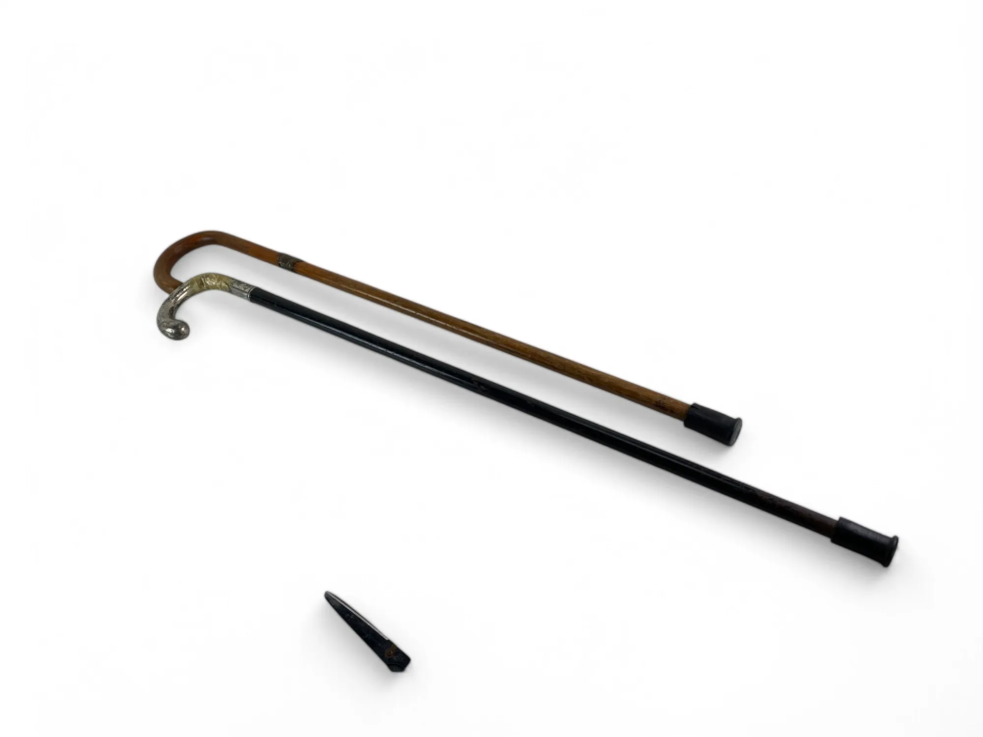 130. 2 st käppar, den ena med trasigt silverhandtag