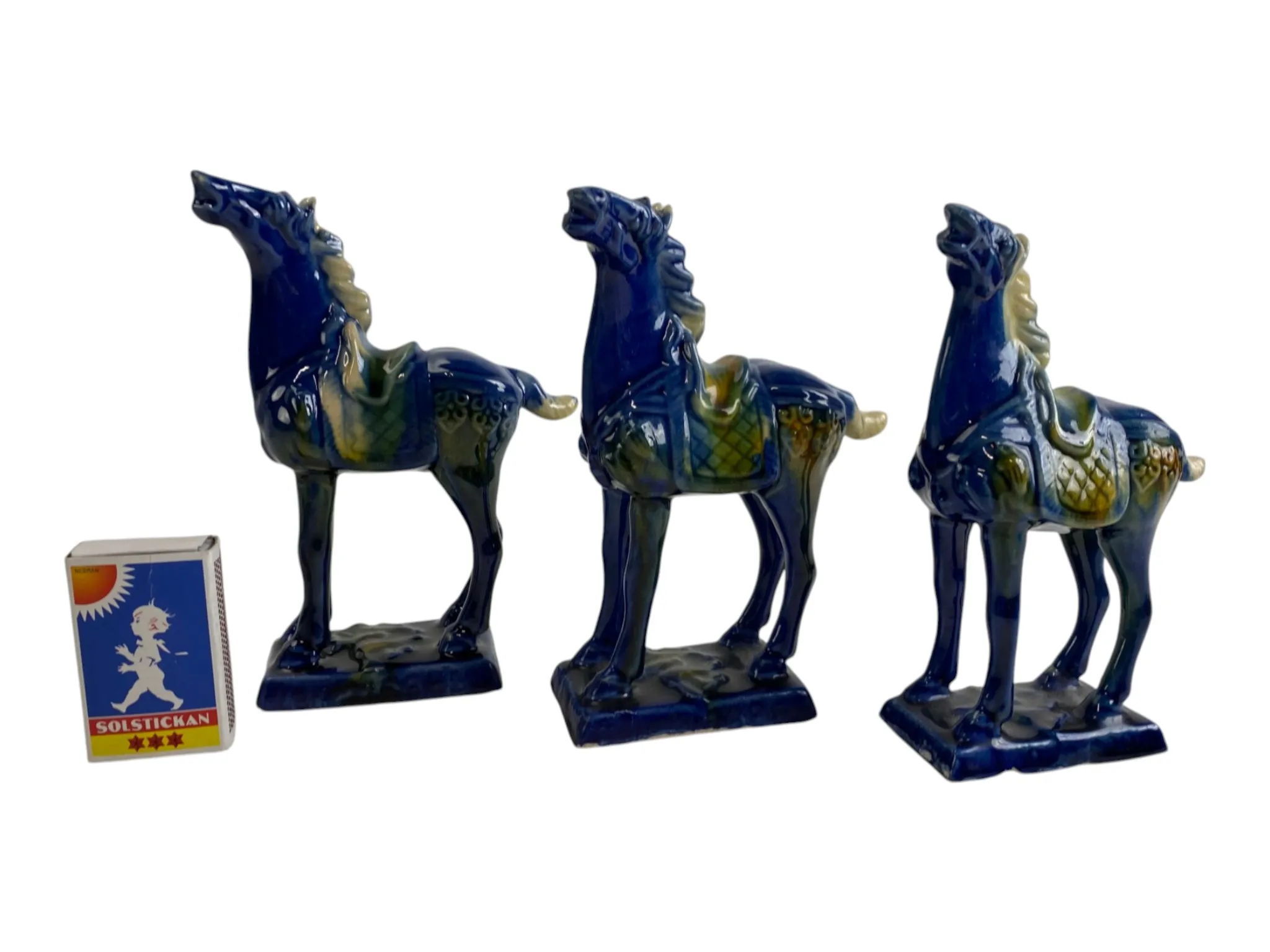90. 3 st hästar, figuriner