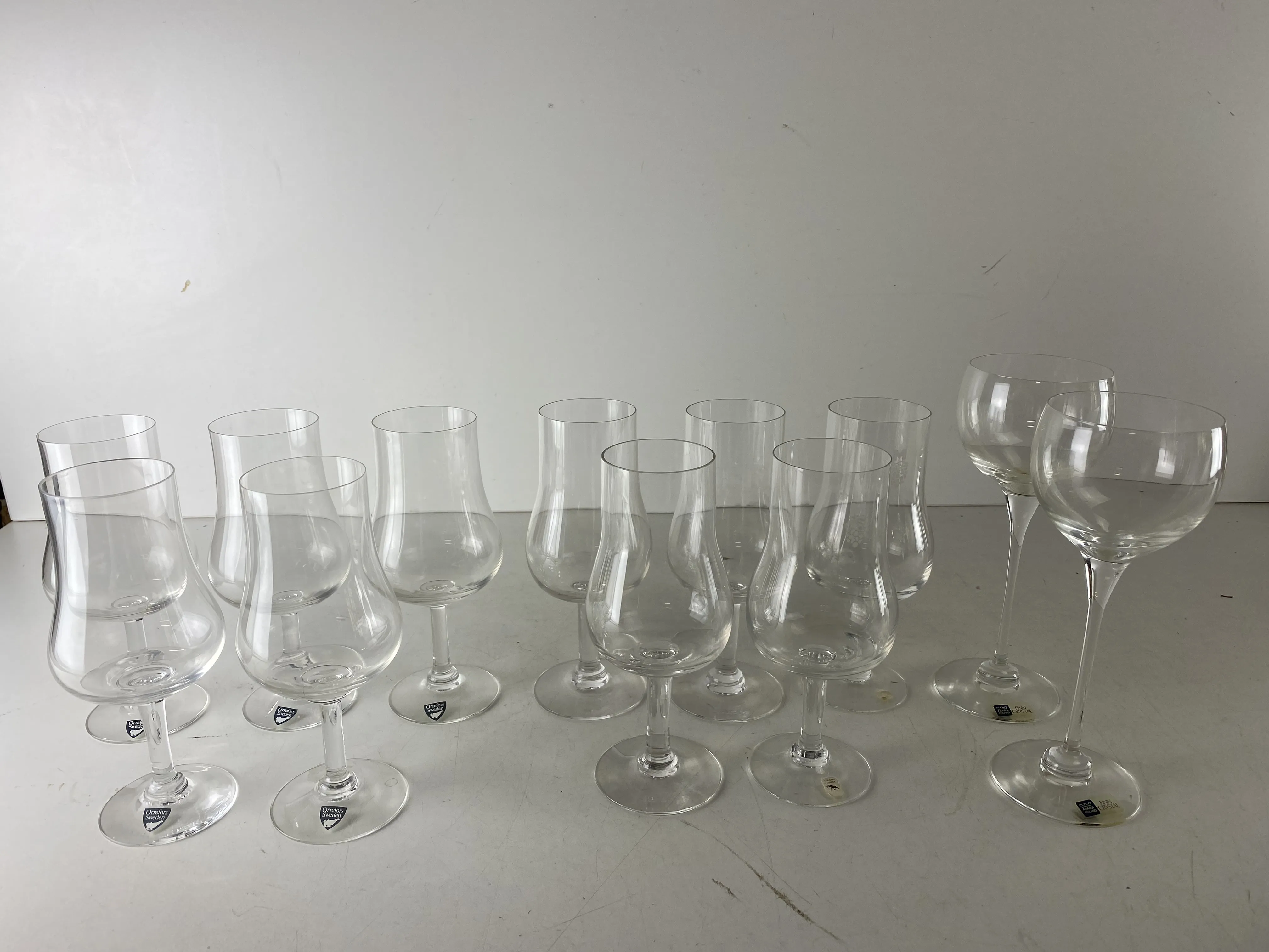 162. 5 Vinprovarglas , ORREFORS, 5 st ÄLGHULTS GLASBRUK och 2 vinglas, ARABIA