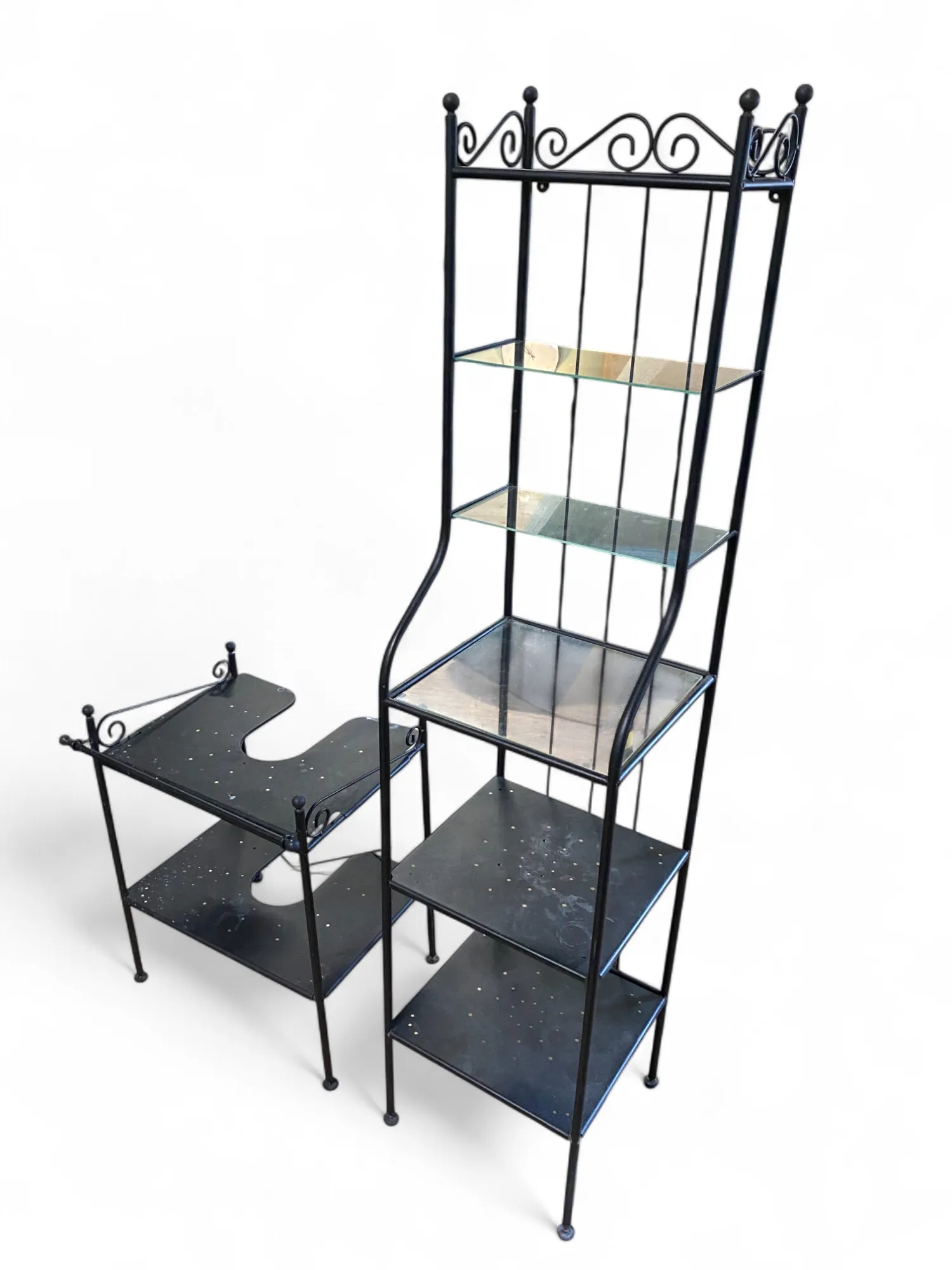 286. Badrumsinredning, metall, kommod för handfat samt hylla med glasskivor
