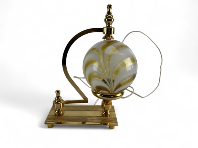 219. Bordslampa, mässingsfärgad, glas