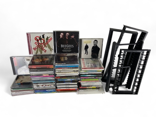 90. CD-skivor, blandad musik och 4 CD-ställ