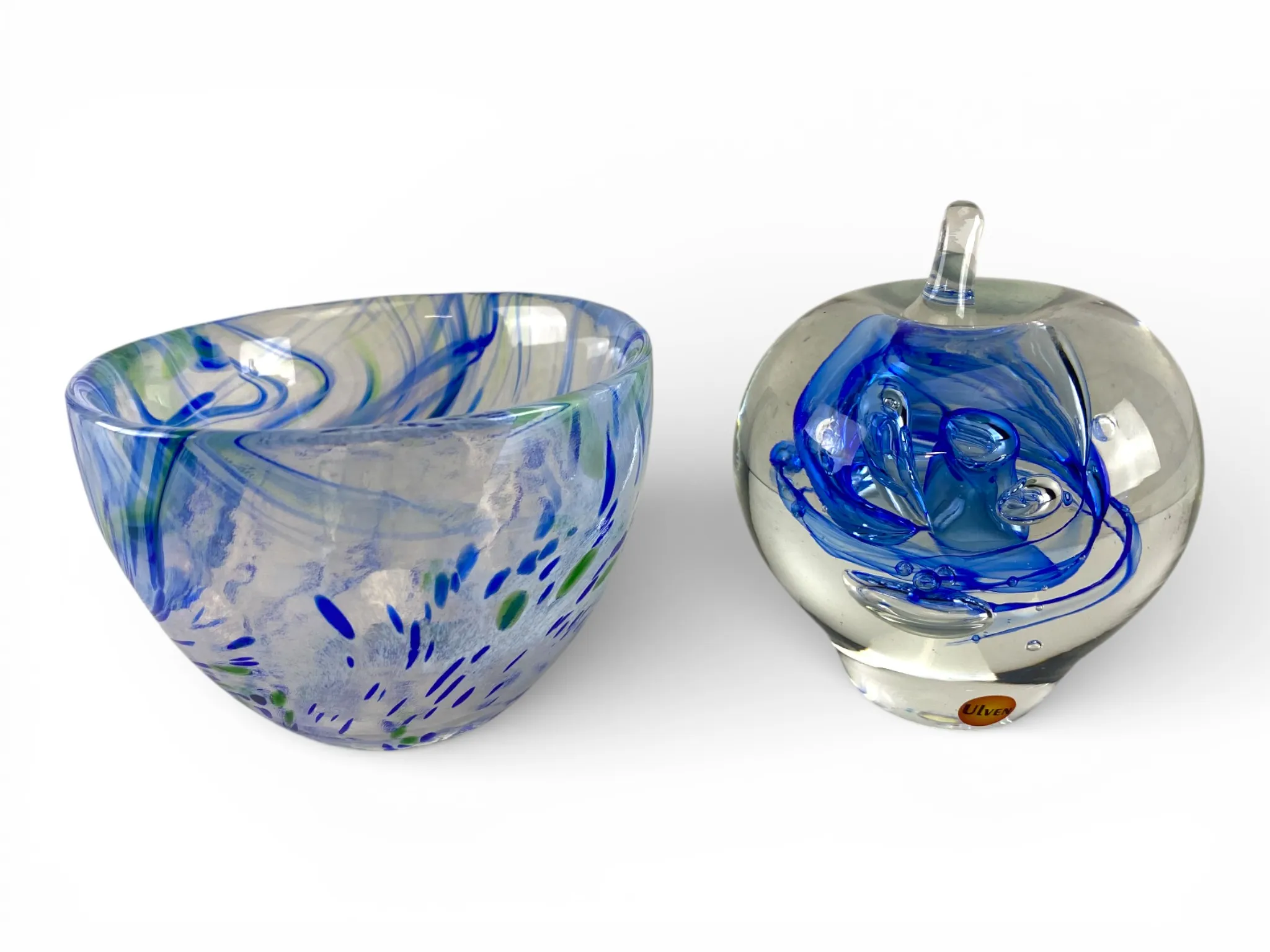 85. Glaskonst Ulven samt glasskål omärkt, 7-9cm