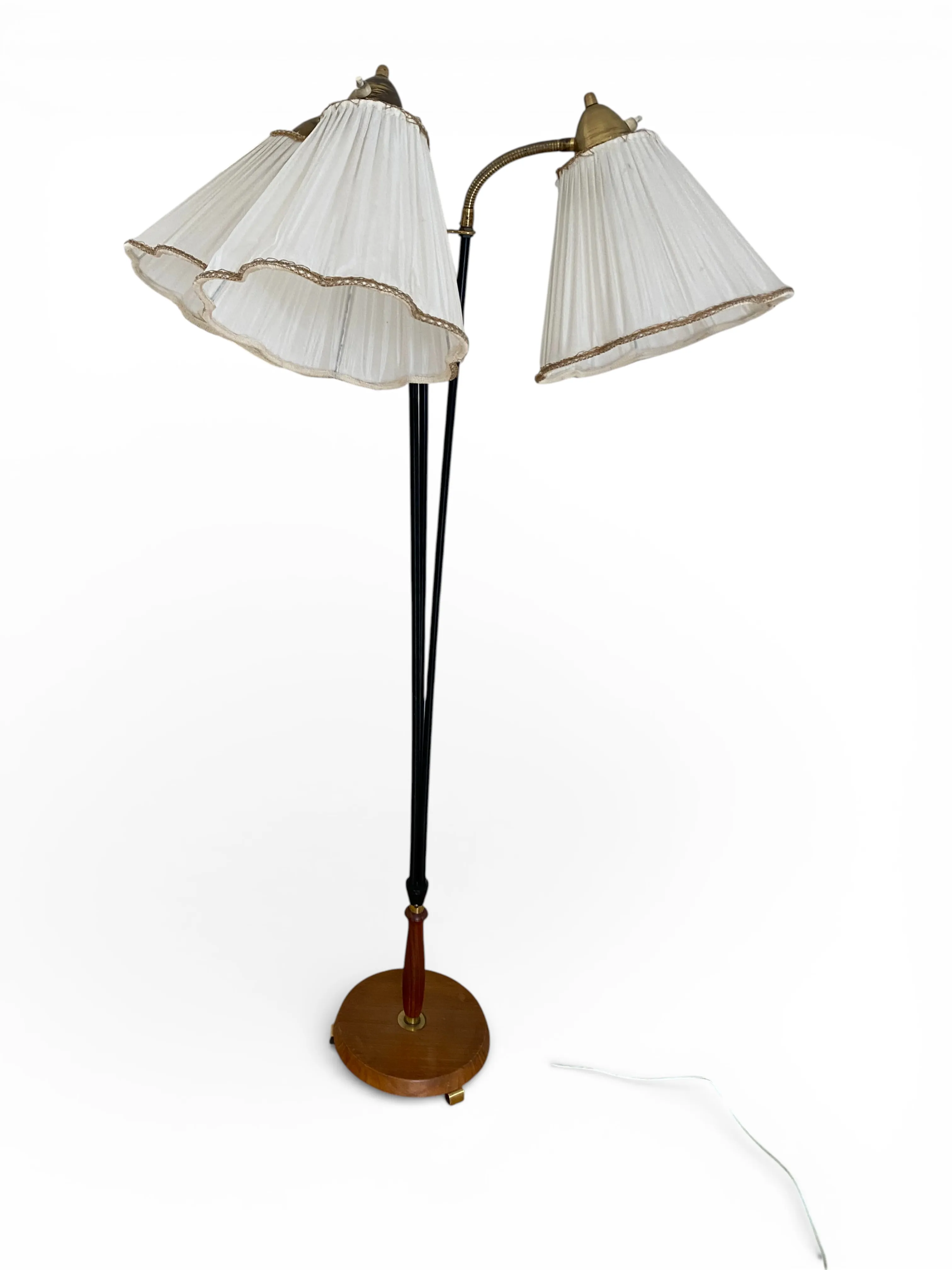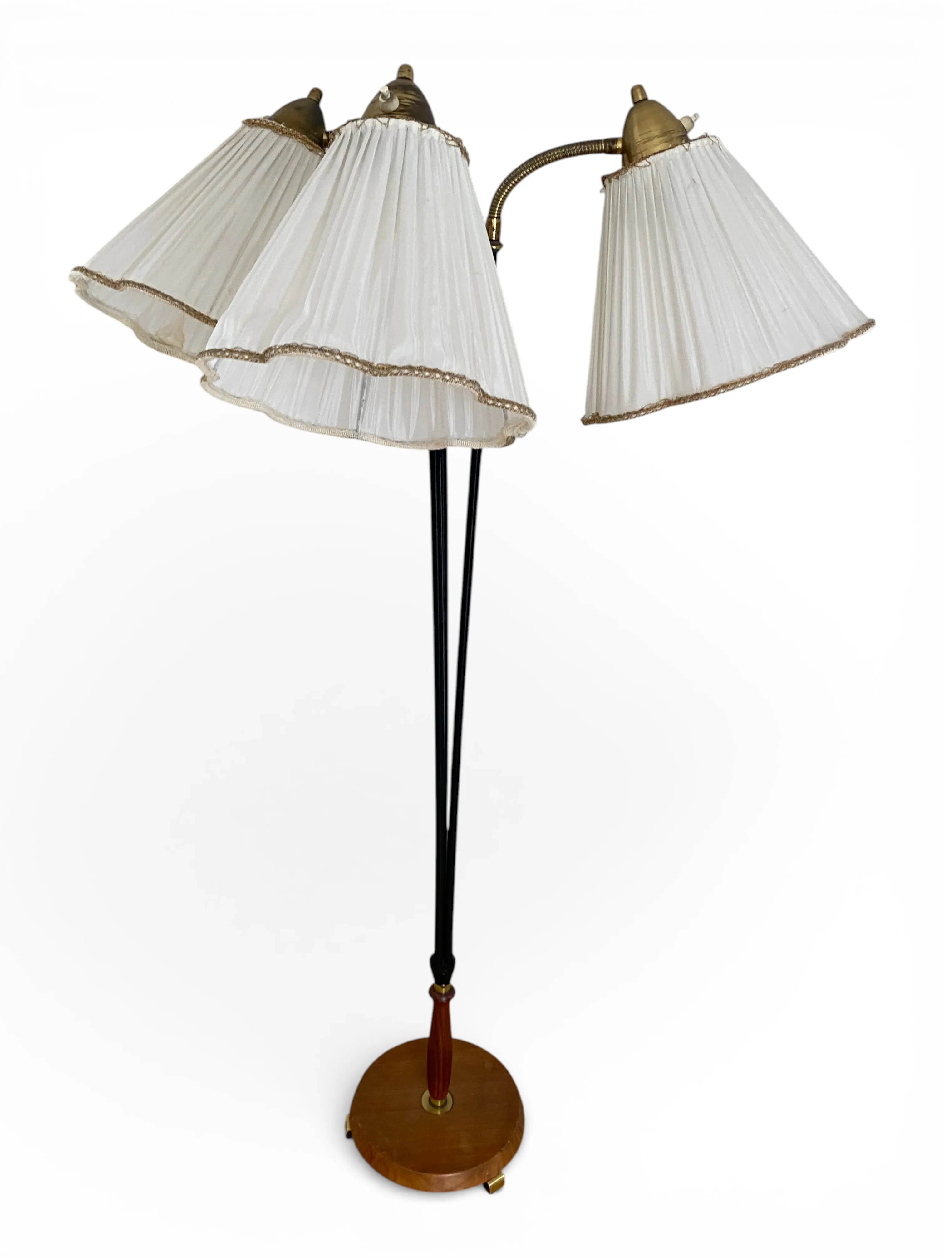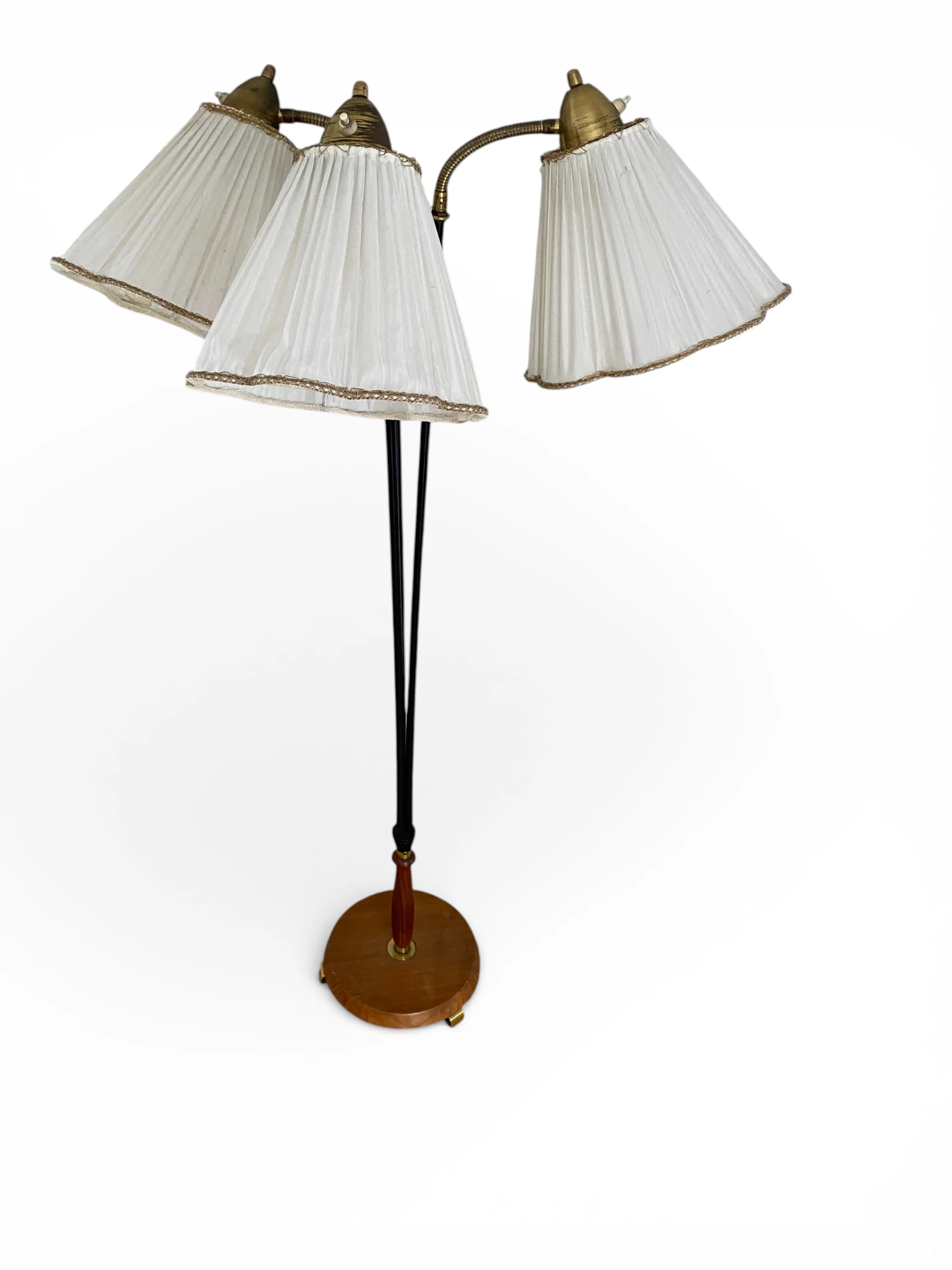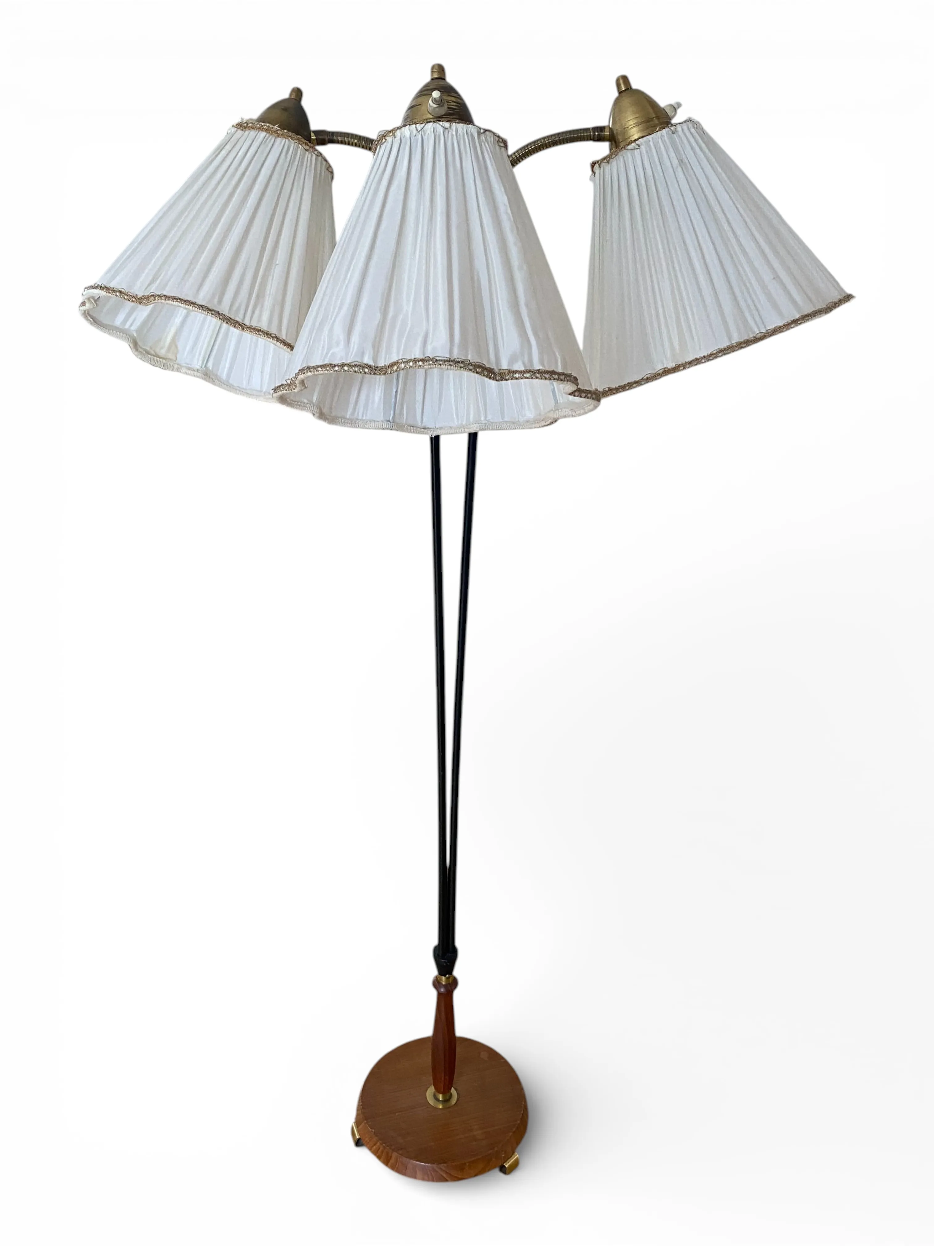 58. GOLVLAMPA, RETRO, tre armad med tygskärmar