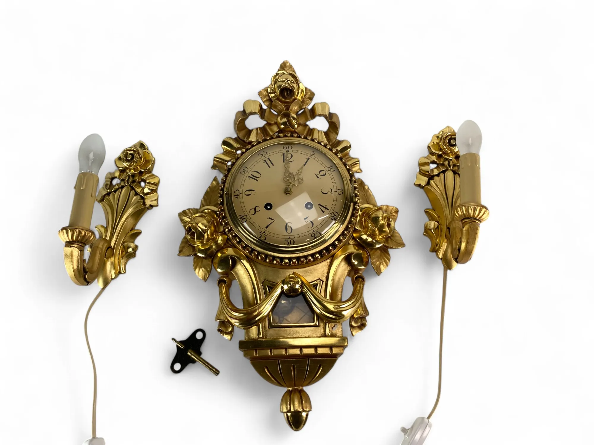 124. Guldpendyl med lampetter, förgyllda