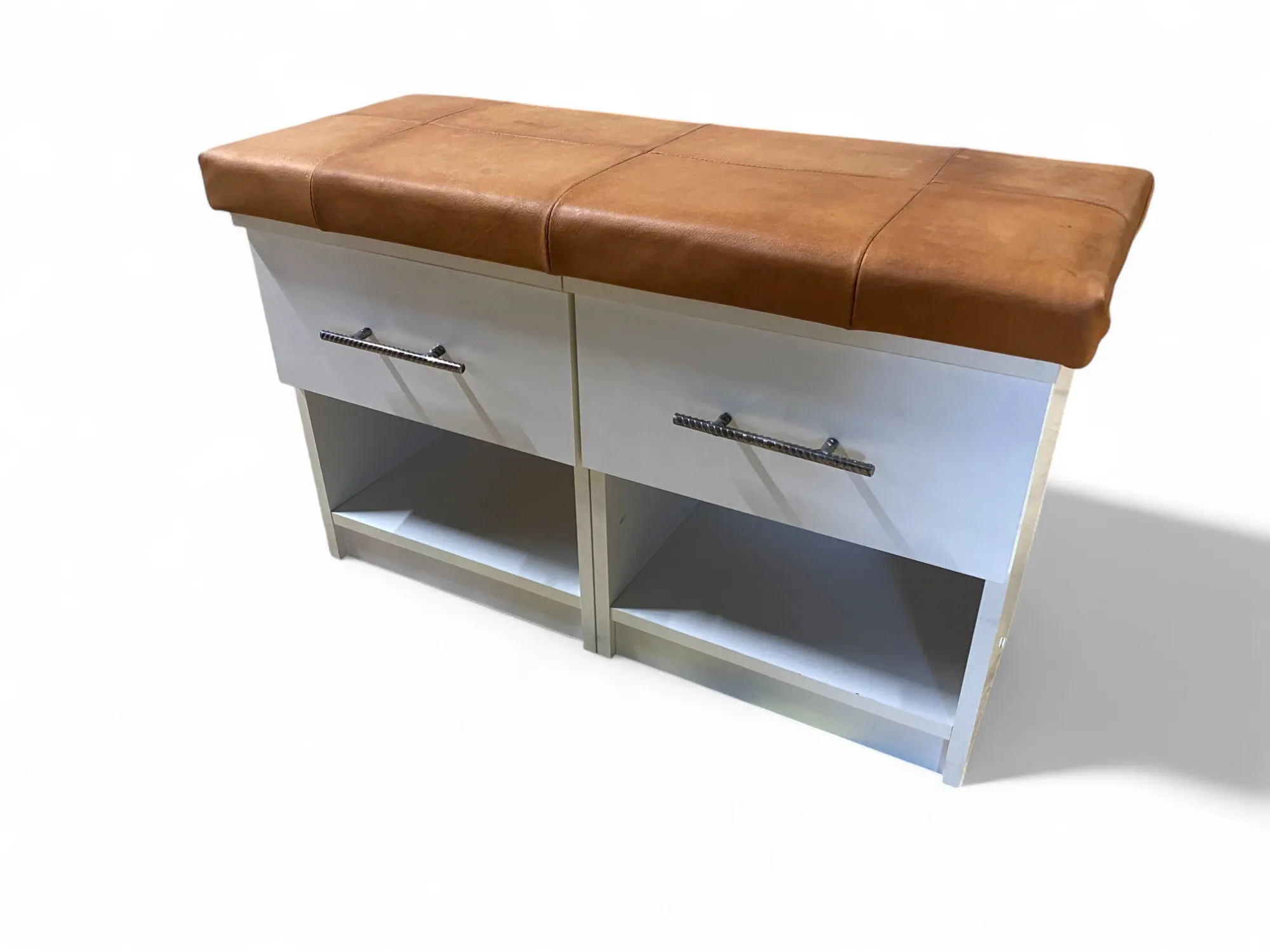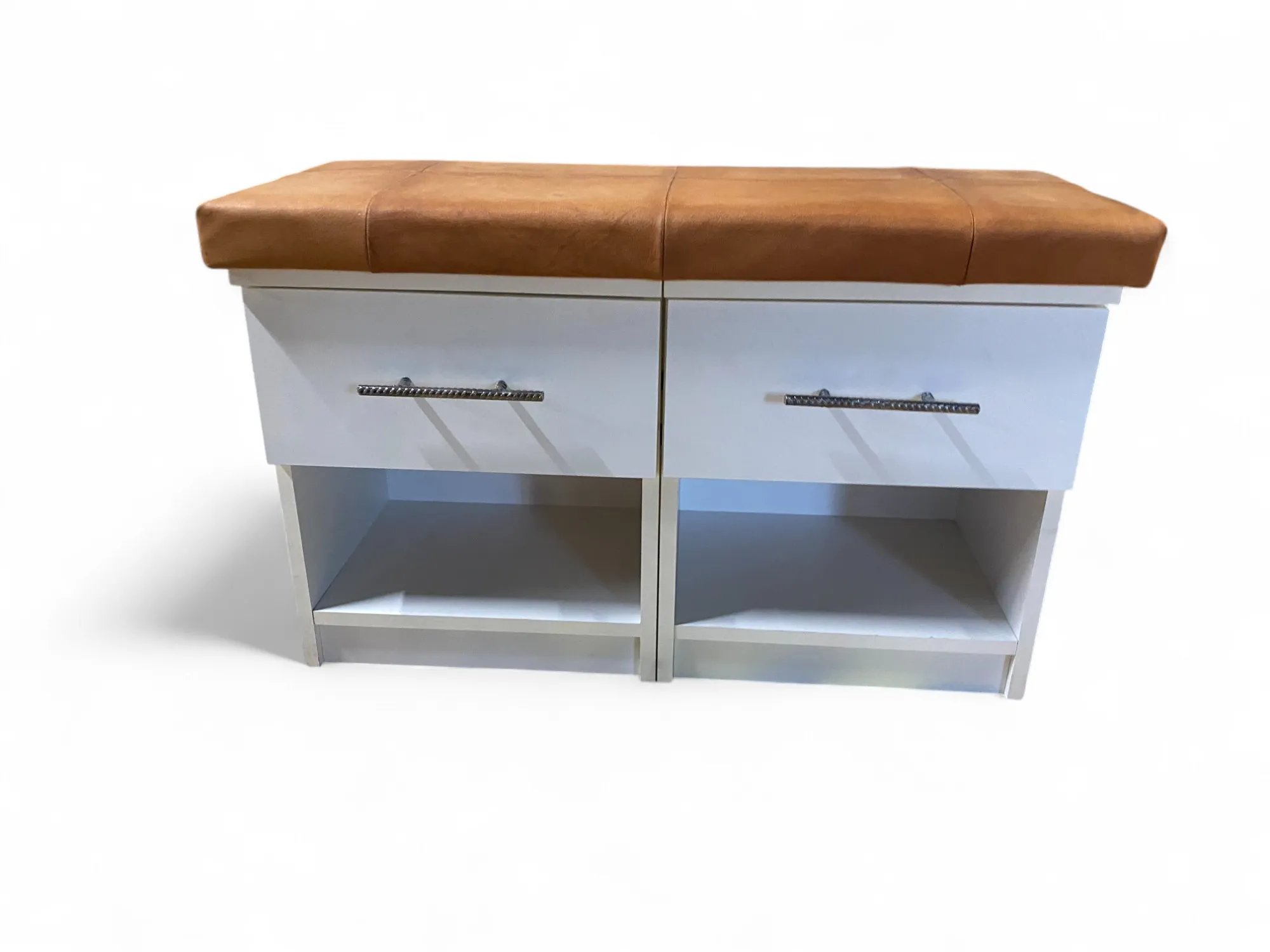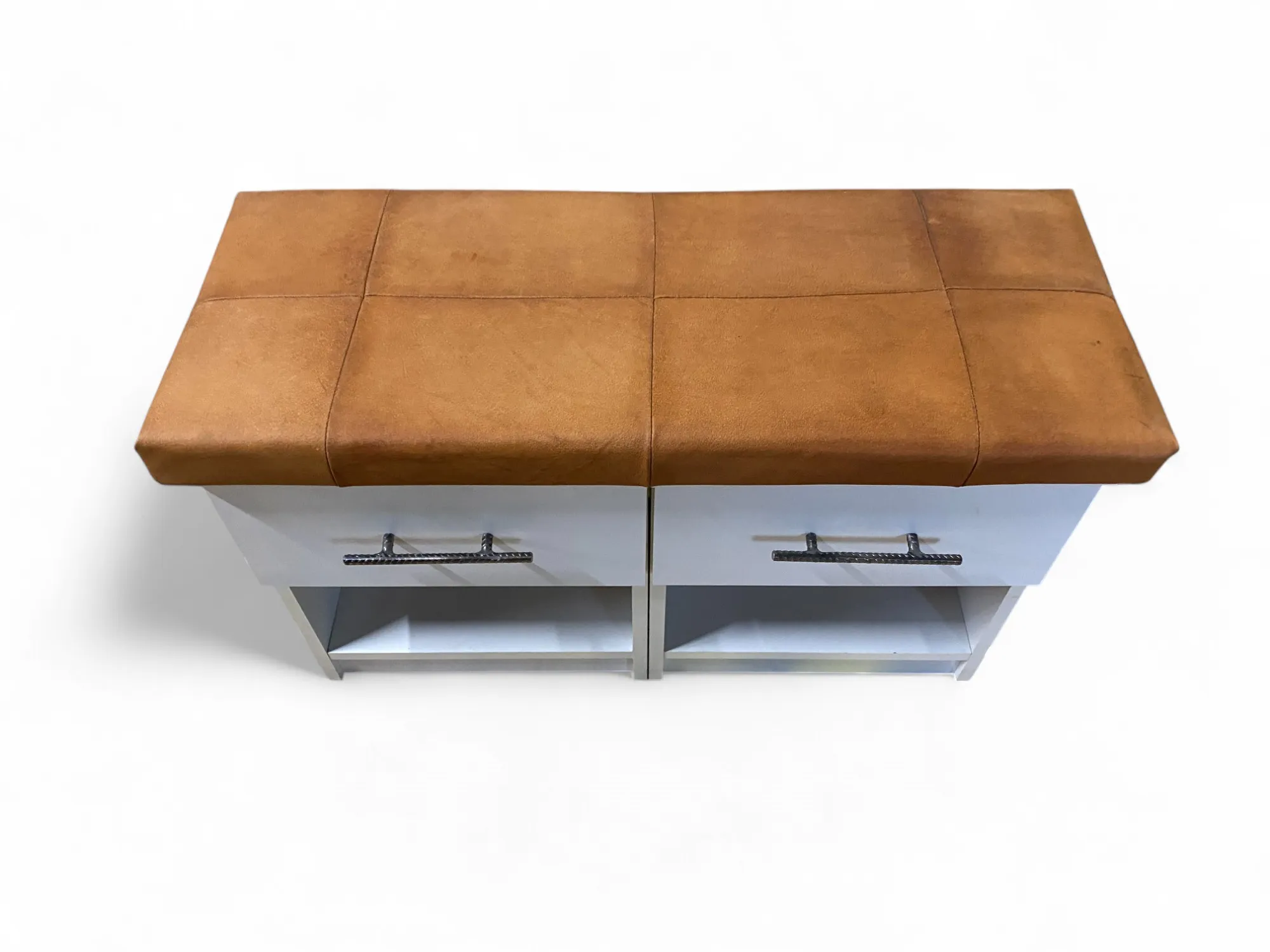 199. Hallmöbel, gjord av två nattduksbord samt en ovansida äkta klädd i läder