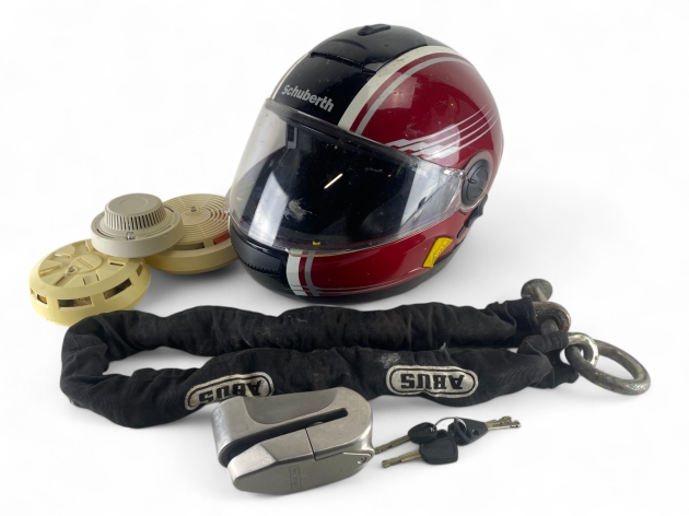 111. Hjälm, lås ABUS och brandvarnare