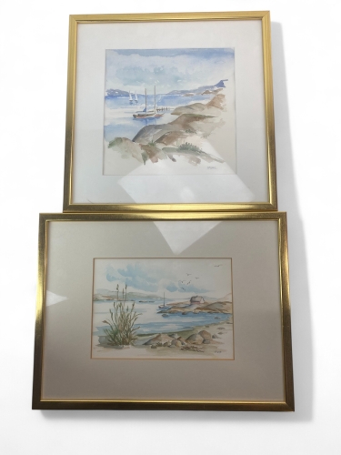 73. INGRID PUKE. Kustlandskap, akvarell, signerade