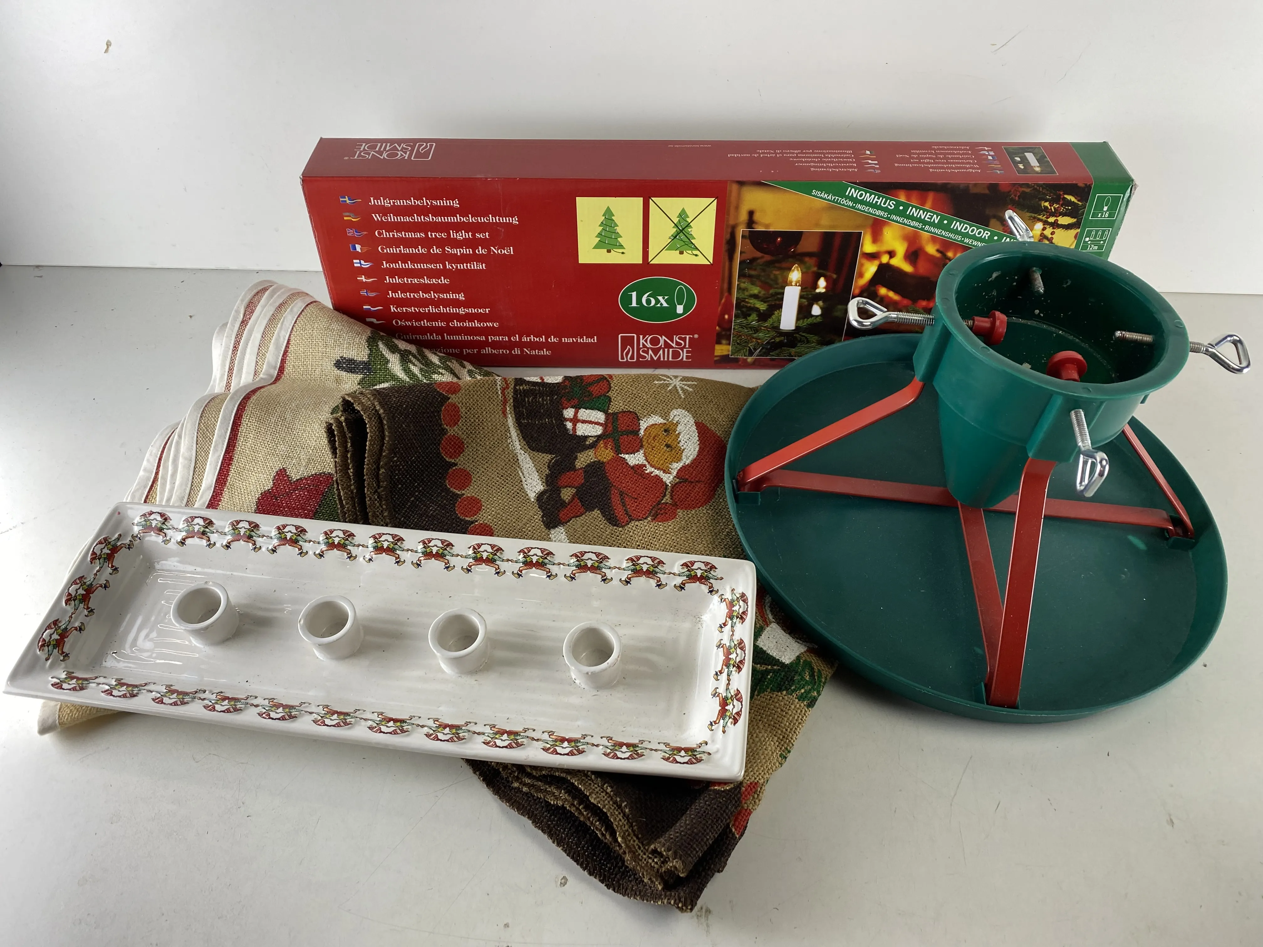 159. Julbelysning, julgransmattor, julgransfot och adventsljusstake, porslin