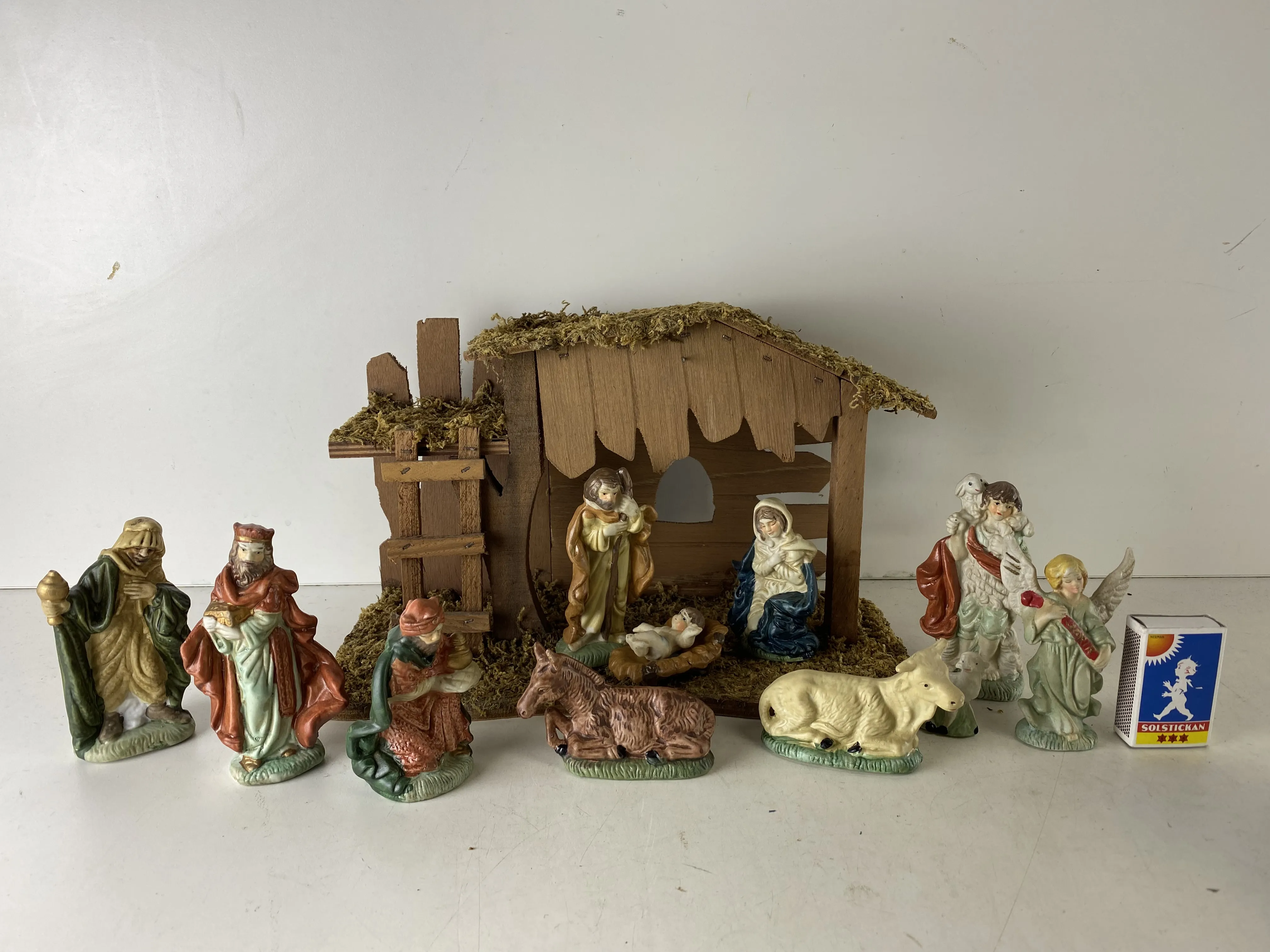 110. Julkrubba med figurer i porslin