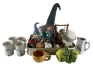 107. Kaffemuggar, tomtar, kåsa, figuriner mm