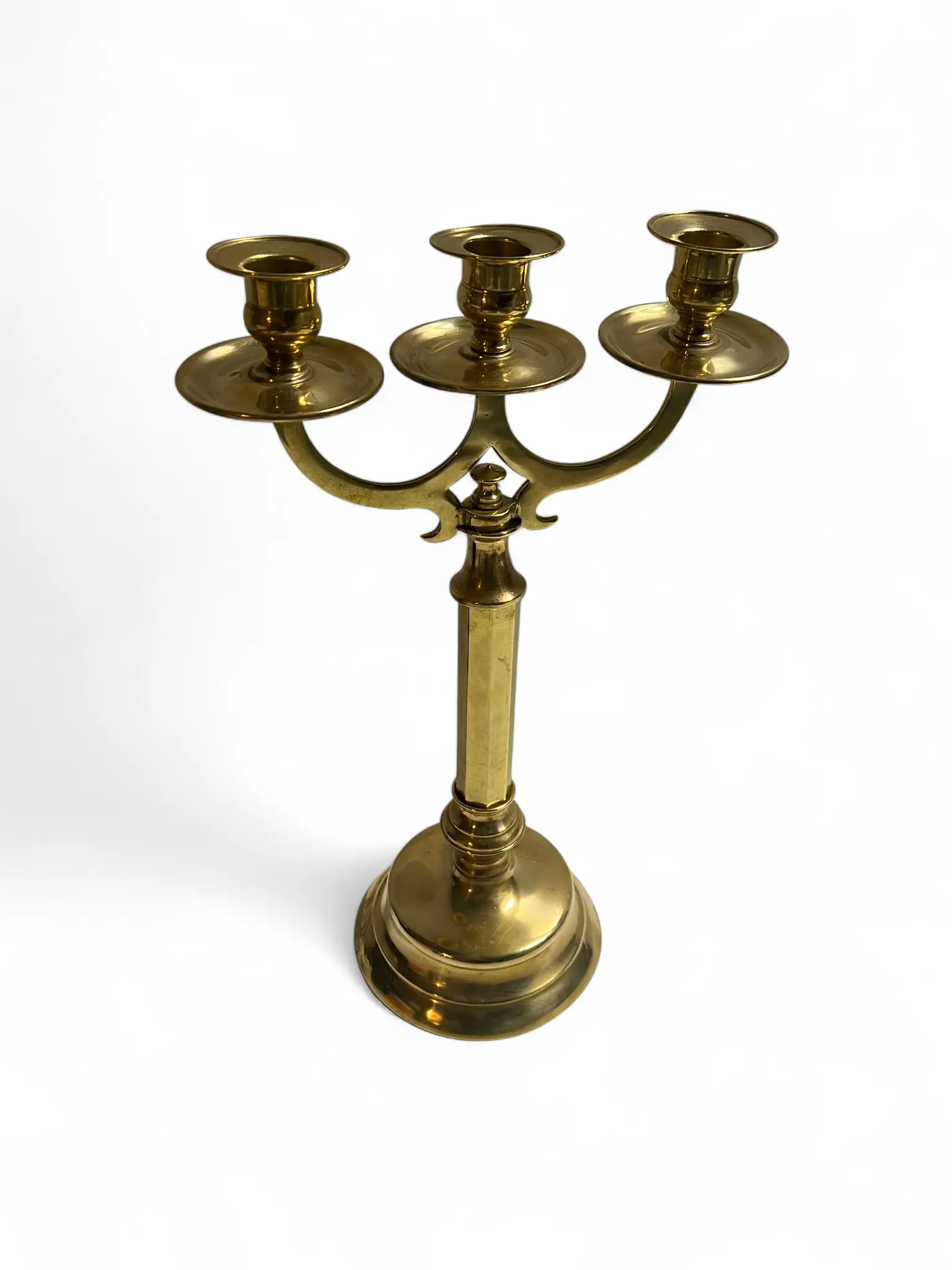 207. Kandelaber, 3 armad, mässing, omärkt, h:38cm