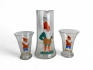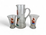 113. Karaff med två glas, tomtemotiv, äldre: H:13-23.5cm