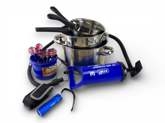 61. Kastruller, pump, lampa, pilar mm