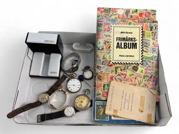 238. Klockor, reservdelar, frimärken mm