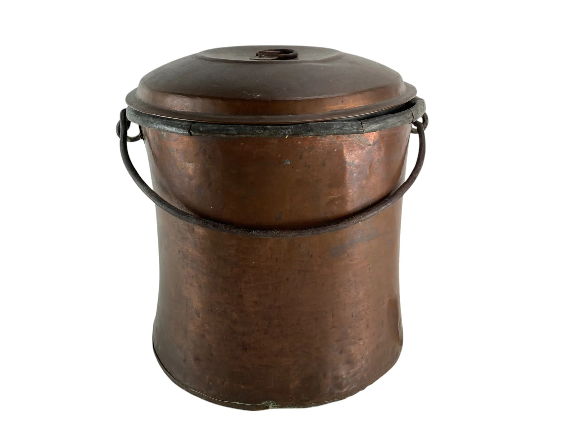 128. Kopparhink med lock, patina