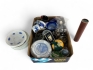129. Kuriosa och småpryttlar, bla.a. kikare som ändrar mönster när man ser in i den fat till blå blom mm