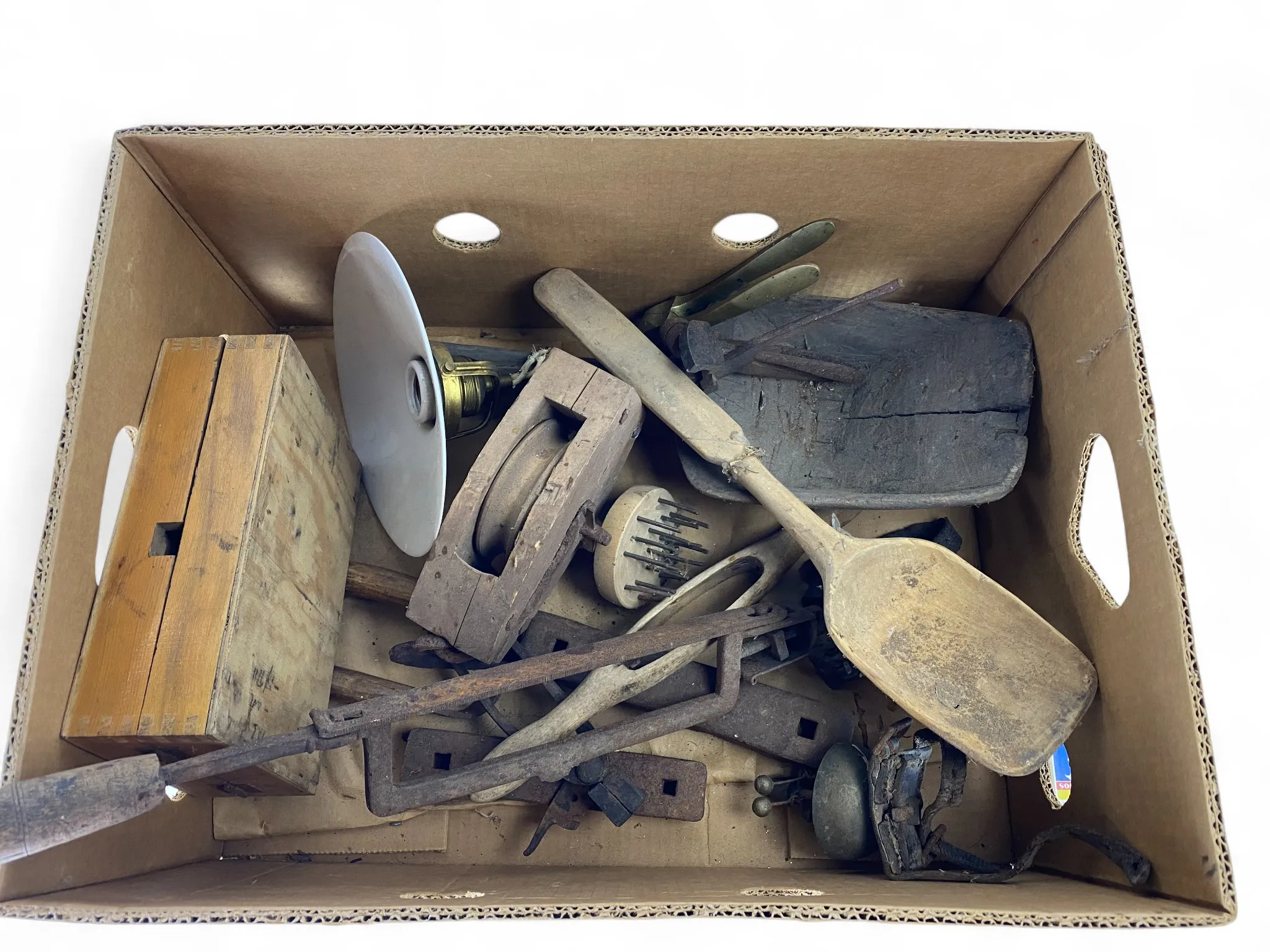 154. Låda med äldre allmogesaker