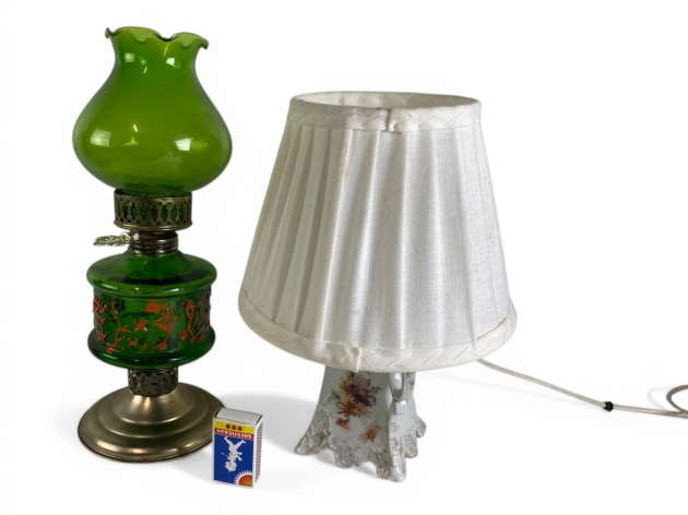 171. Lampa i porslin, samt oljelampa