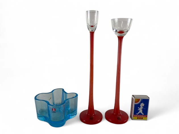 174. Ljuslykta IITTALA och 2 glas på hög fot, B.A.G