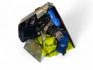 125. Låda med mcväst, halsdukar för mc, glasögon, säkringar mm platta för fotstöd mm