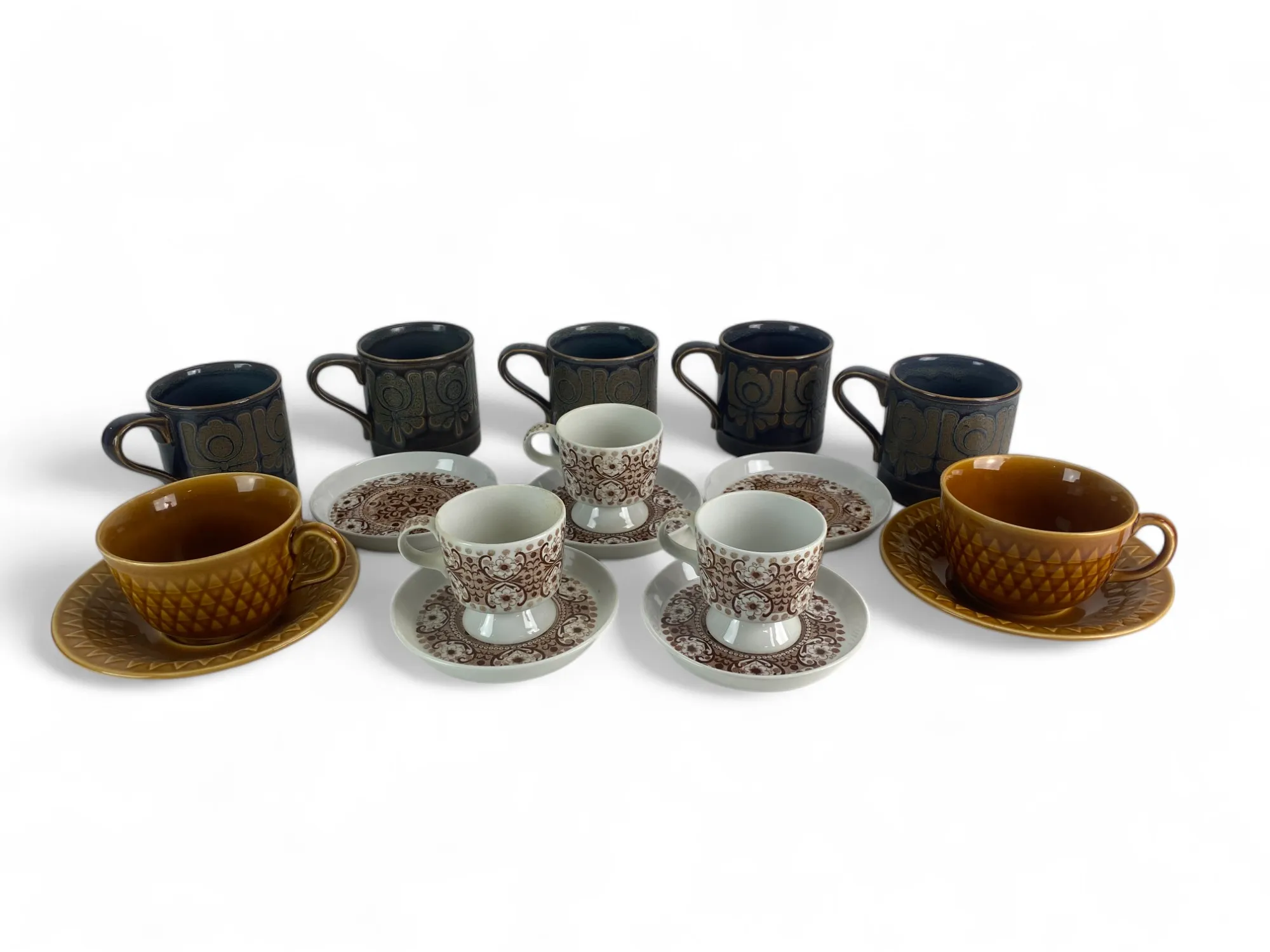 141. Moccakoppar Arabia, engelska muggar samt två tekoppar från Norge
