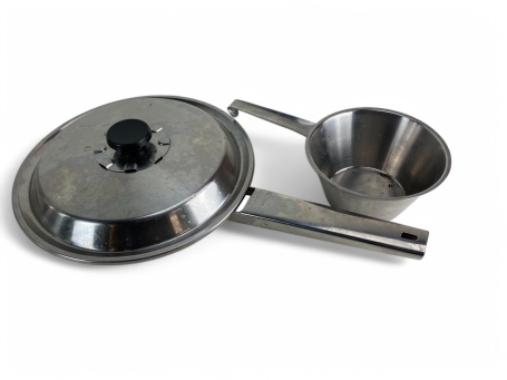 345. Panna med kopparbotten och ventil i toppen, NILSJOHAN, samt rostfritt mått