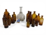 91. PArti gamla apotekarflaskor mm, samt karaff med bruten botten