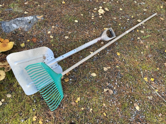 157. Räfsa, plast/trä och skyffel