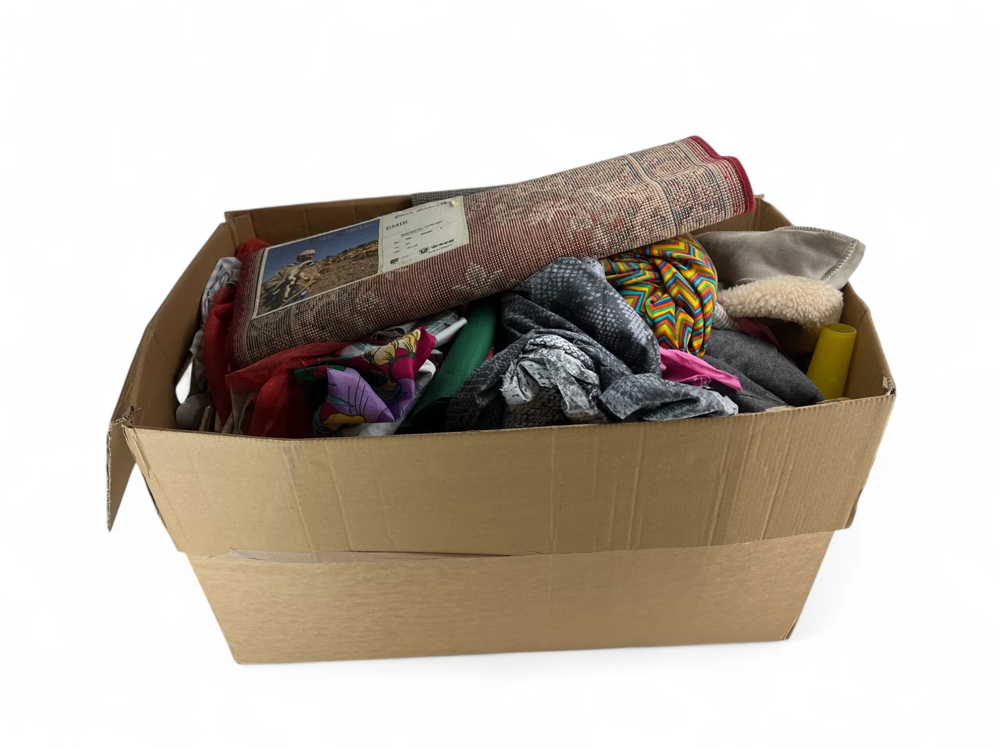 23. Rövarlåda med tyger matta mm