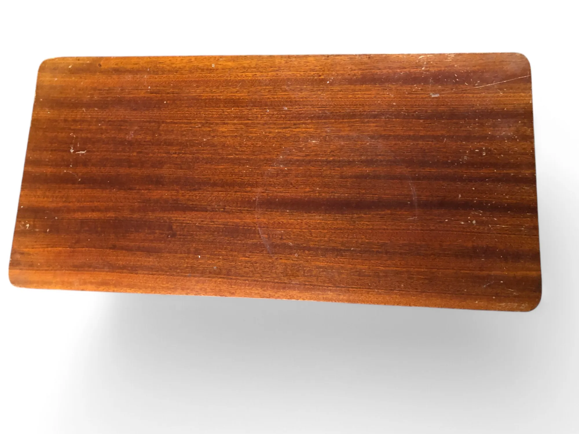 353. Sidobord/sängbord, teakfanér och stort fruktfat, metall