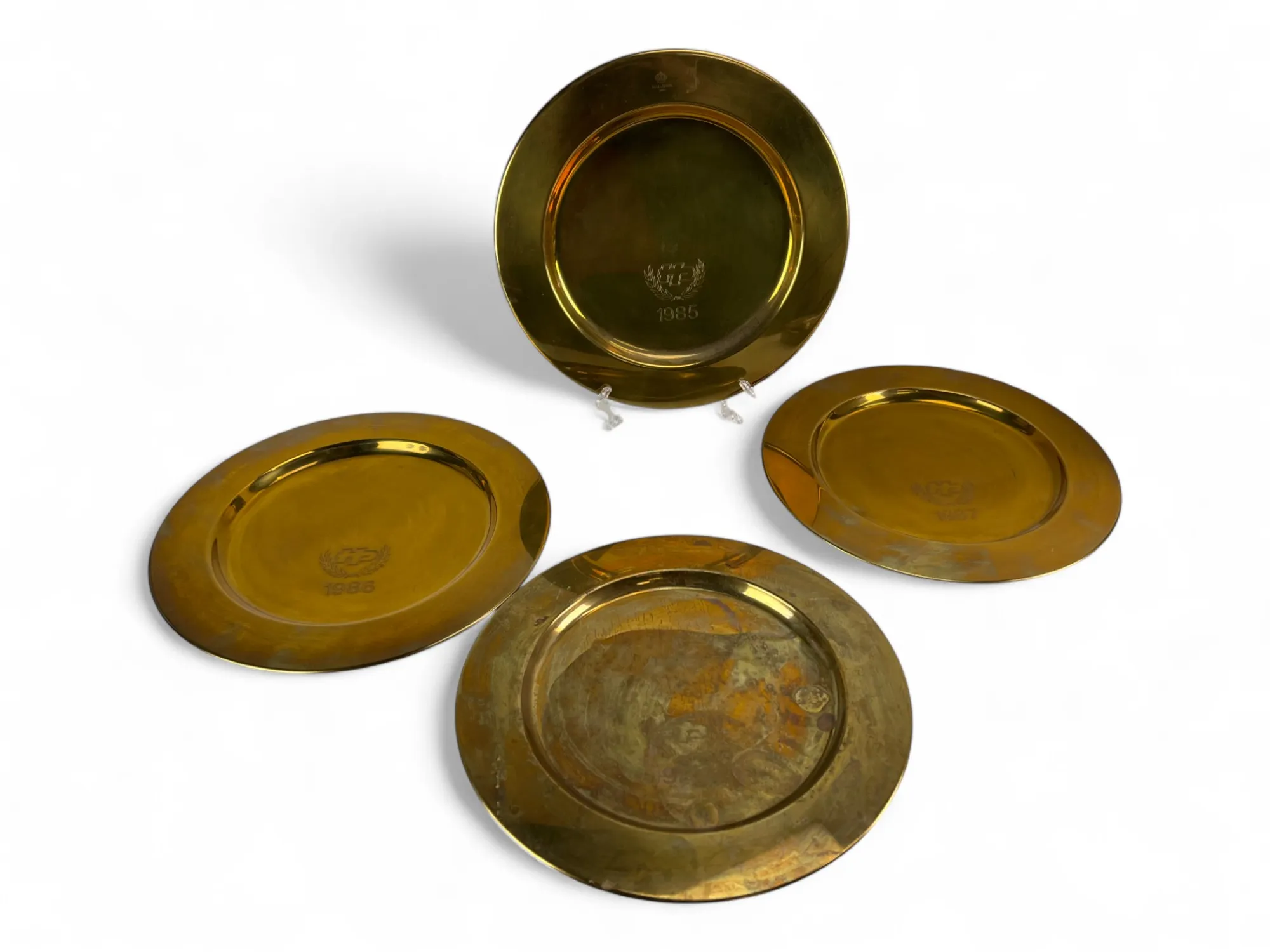 181. Skultuna mässingstallrikar med gravyr