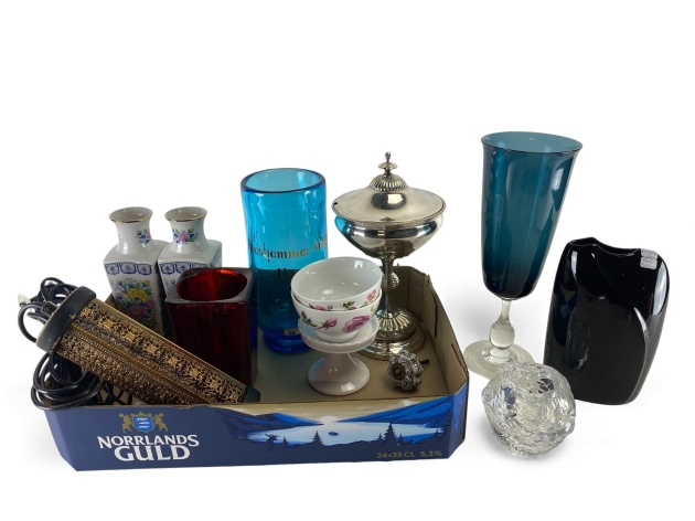 65. Svart vas ARABIA, ljuslykta snöboll KOSTA, lampa mm