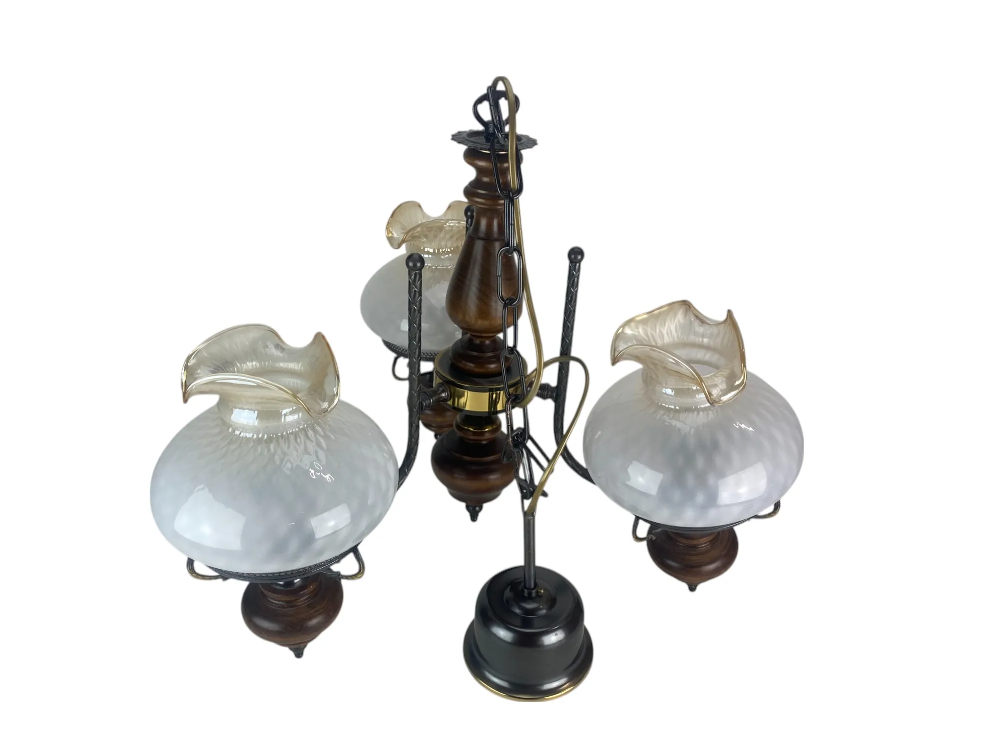 205. Taklampa, trearmad, med glaskupor