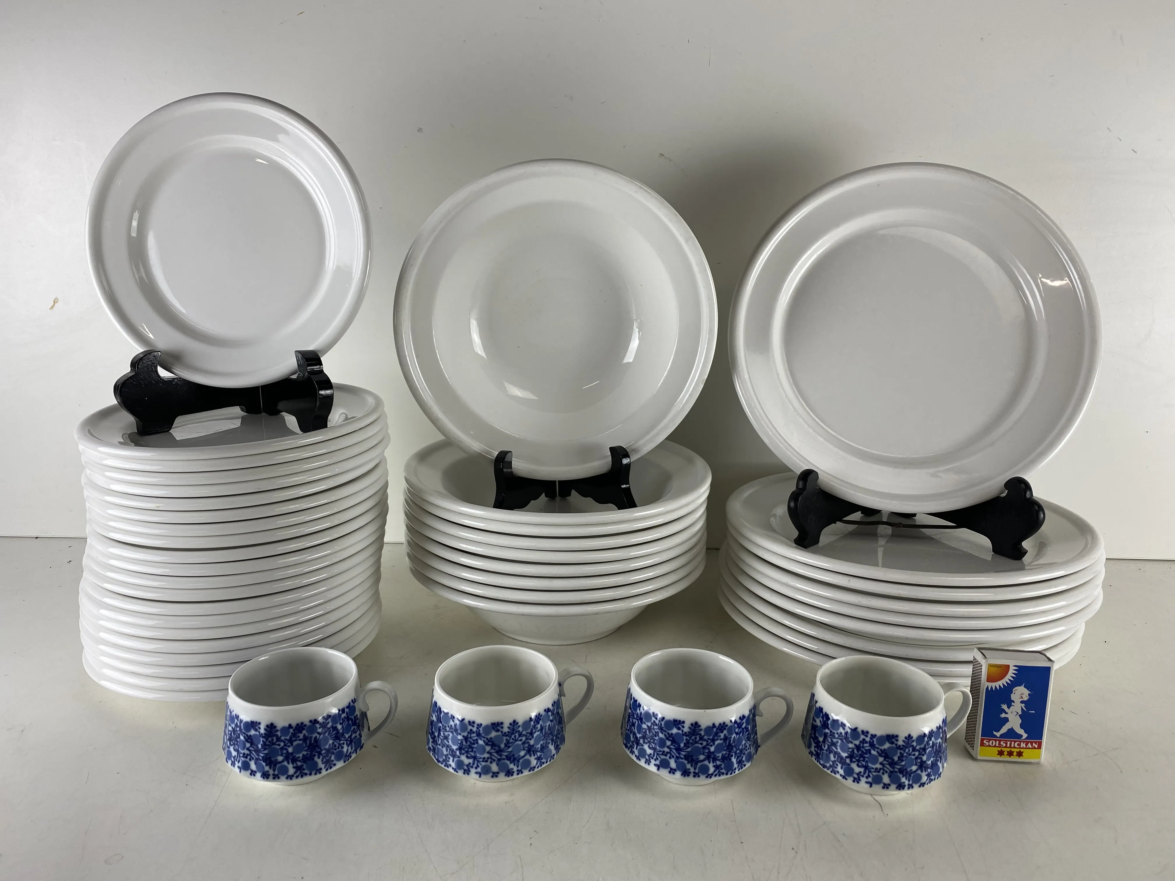 130. Tallrikar GUSTAVSBERG och 4 koppar "Doria", ARABIA