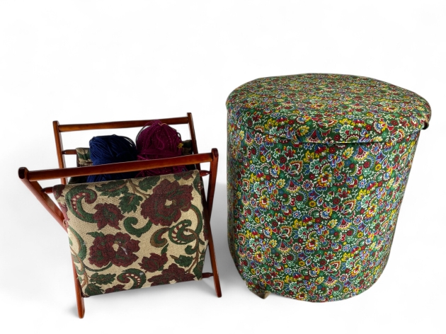 161. Tidningskorg och sypall med garner