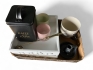 202. Torskställning samt ljushållare i stengods, inredning mm