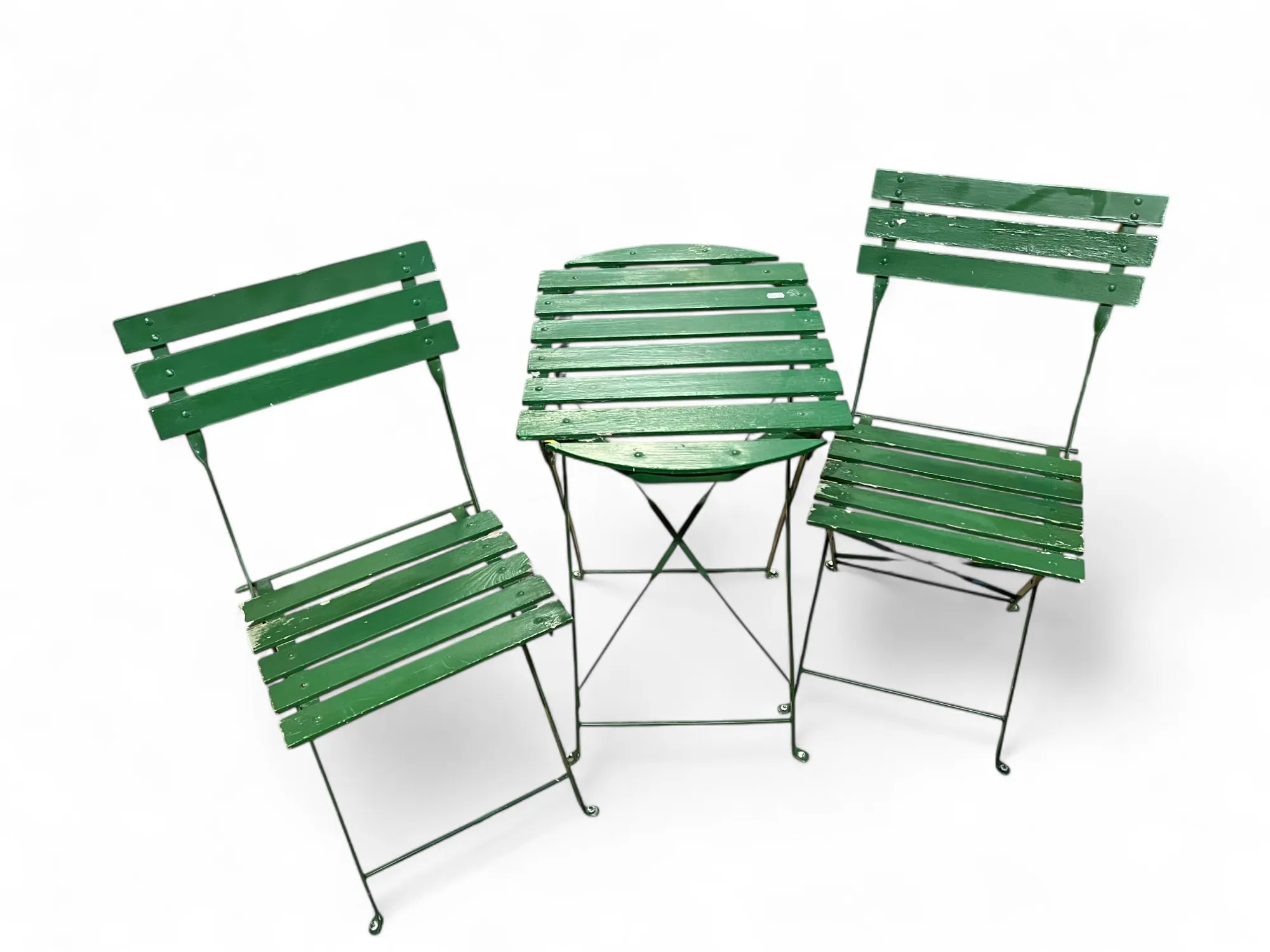 170. Trädgårdsmöbler, fällbord och stolar, grönmålade