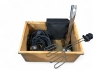 Trälåda med sågar, förlängningskabel, grilltändare, grillspett