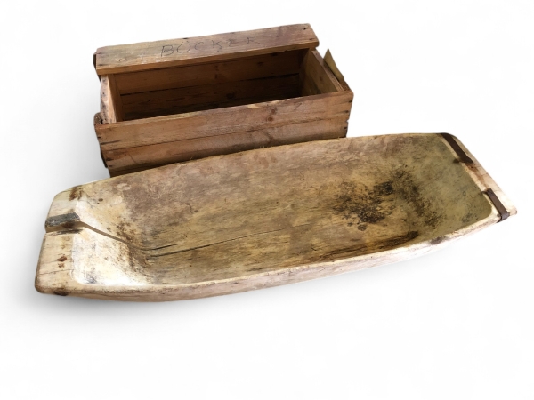 237. Tråg med sprickor och trälåda