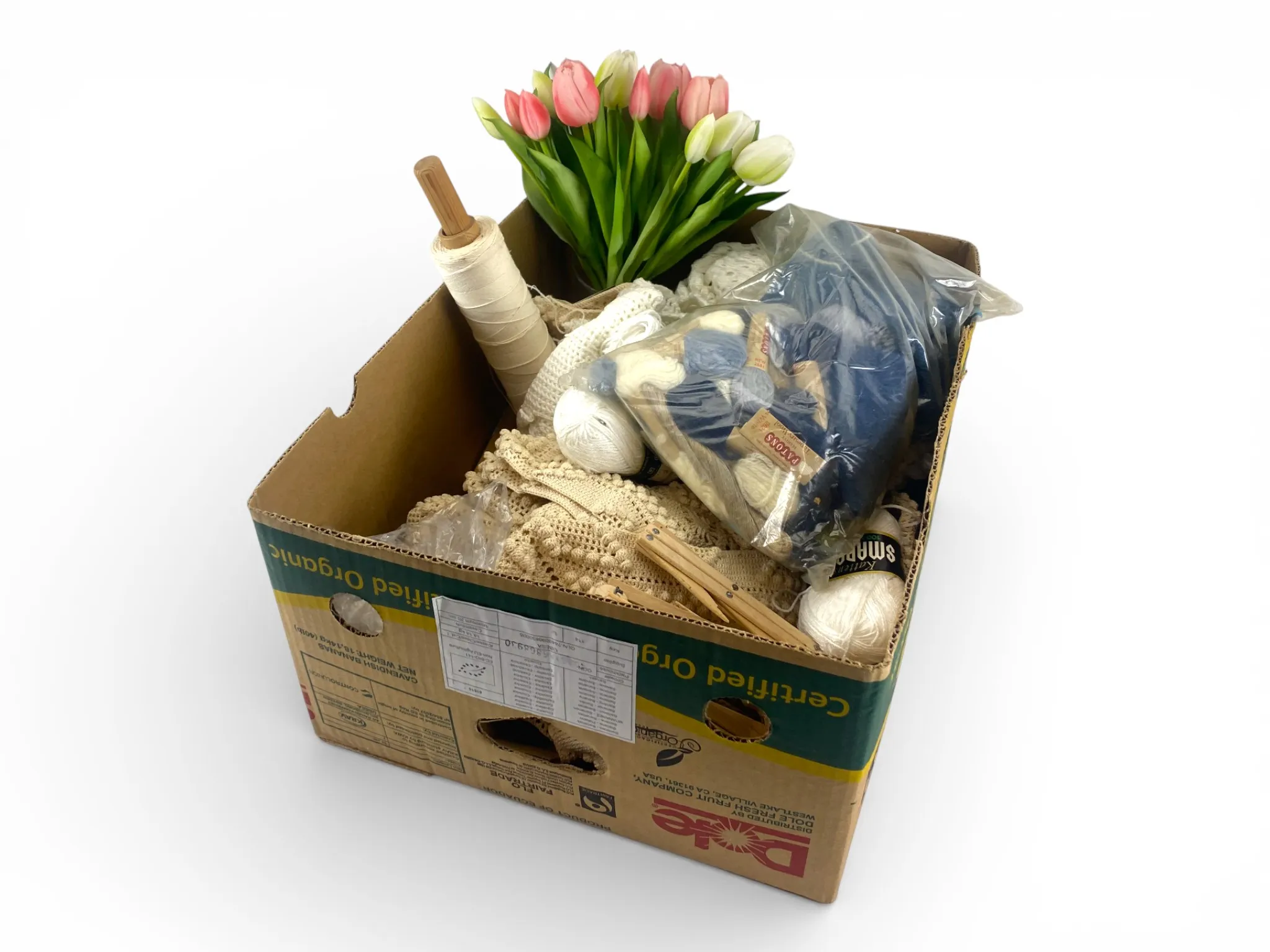 69. Virkat och konsttulpaner med vas mm