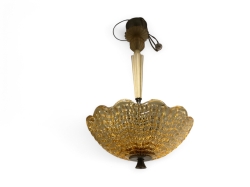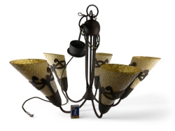 Skärmar i rött glas med vit insida. Fläckar på mässingskopparna