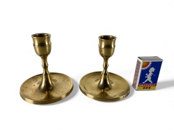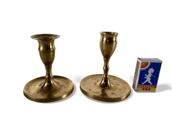 H. 14.5cm och 15cm. Den mindre ljusstaken har grov gäng.