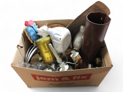 Pins Ängelsberg Hyttan, ICA, regn- eller duschhättor från ICA, prismor, balanserande figur mm.