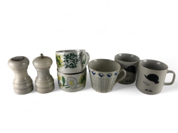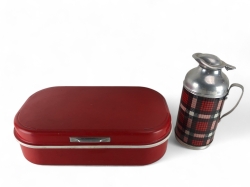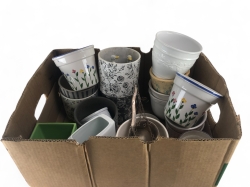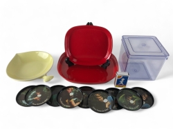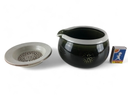 Kanna i porslin, platta i plast/metall
