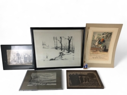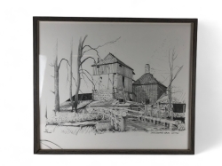Tryck av blyertsteckning. 47x40cm. Glaset trasigt i ett hörn